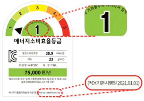 구매 전 반드시 제품에 부착된 에너지 소비 효율 등급 라벨을 확인하고,