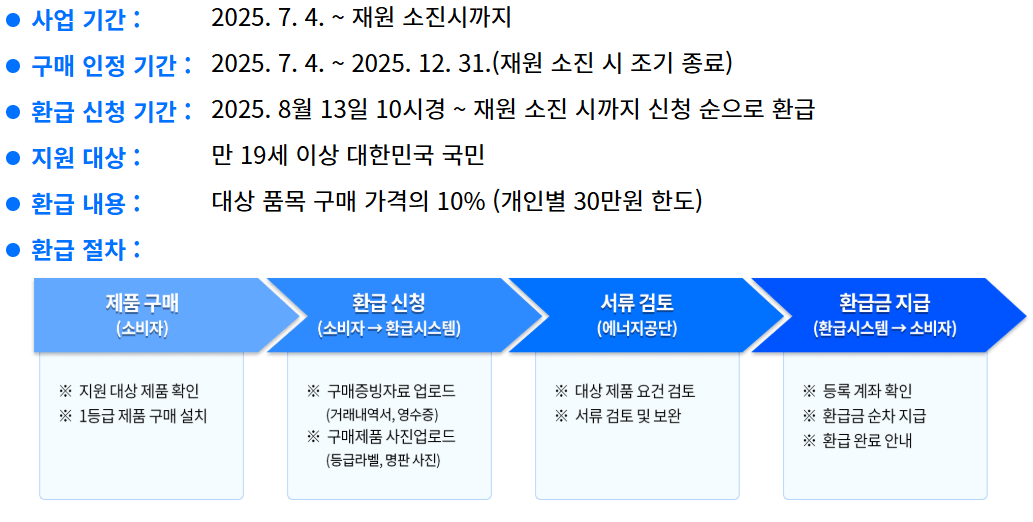 이 사업은 환경부와 산업통상자원부가 협력해 운영하며, 매년 예산이 한정되어 있어 조기 종료될 수 있습니다. 즉, 고효율 제품을 구매할 계획이 있다면 환급 기간을 반드시 확인하는 것이 중요합니다.