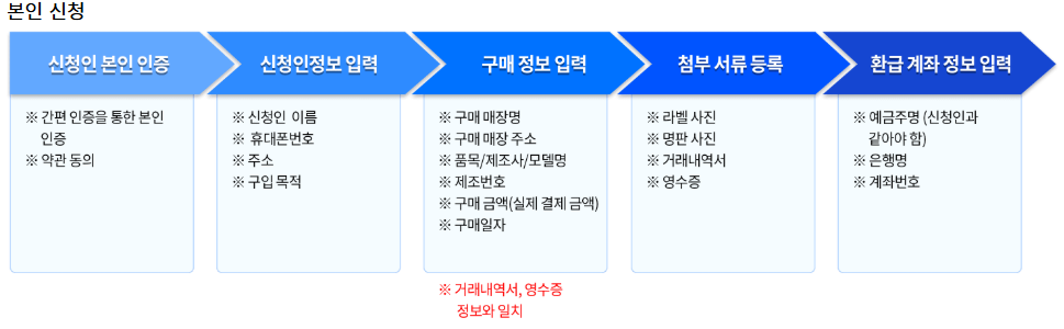 회원가입 후 구매 증빙자료를 제출하면 되며, 심사를 거쳐 환급금이 지급됩니다.
