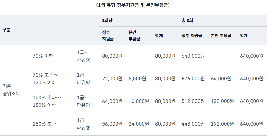 전국민 마음투자 지원사업 본인부담금 및 정부지원금