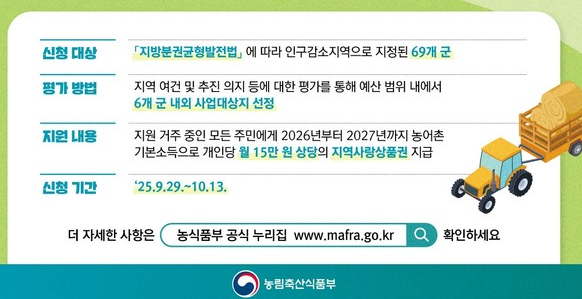 농식품부는 “재정 여건을 충분히 검토해 안정적으로 추진 가능한 지역만 선정했다”고 밝혔습니다.